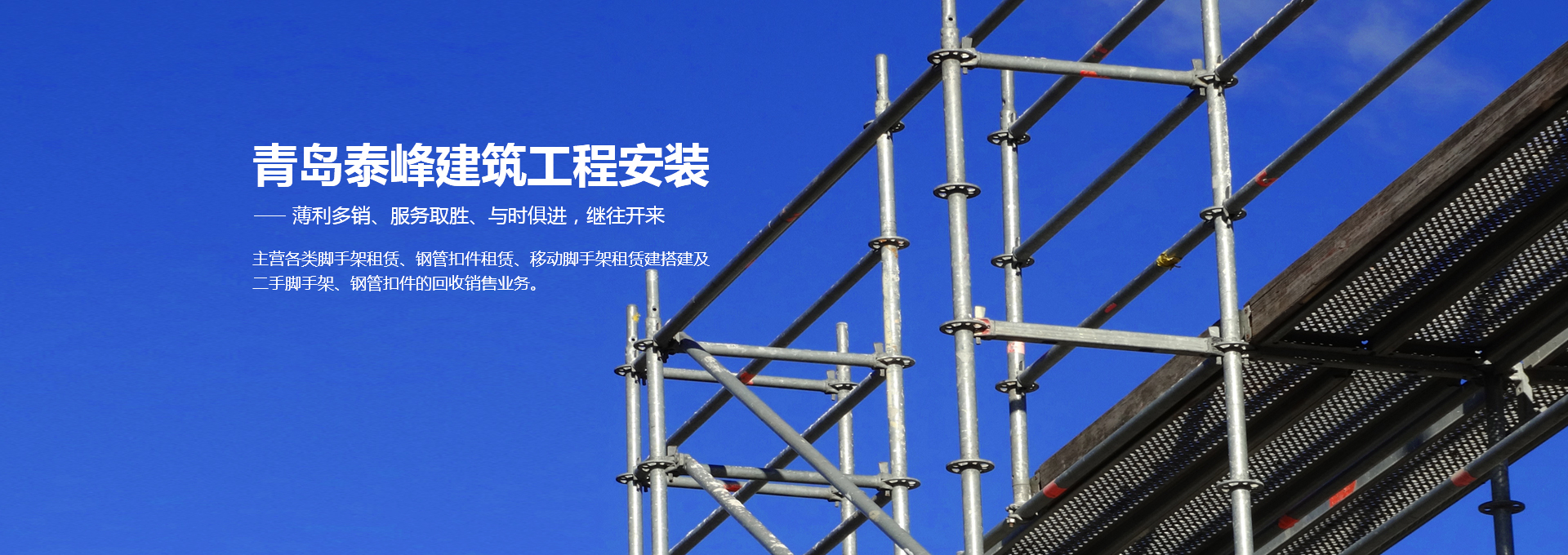 主營各類腳手架租賃、鋼管扣件租賃、移動腳手架租賃建搭建及二手腳手架、鋼管扣件的回收銷售業務